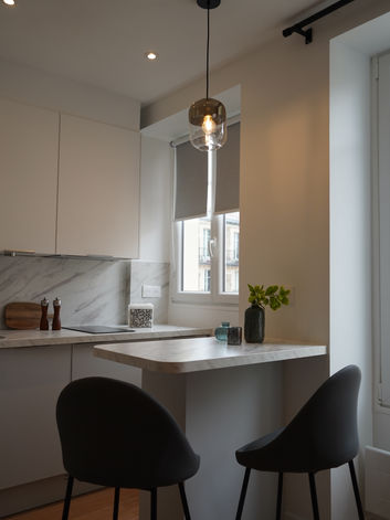 Destiné à une étudiante, ce studio devait offrir tout le conforme d'un grand espace. L'organisation et l'agencement ont été totalement repensés. En outre, il a été isolé pour répondre aux normes. Cuisine équipée avec lave-linge, coin bureau, dressing et lit de 140 cm... Grâce à son exposition plein sud, ce studio est baigné de lumière et il y fait bon vivre.